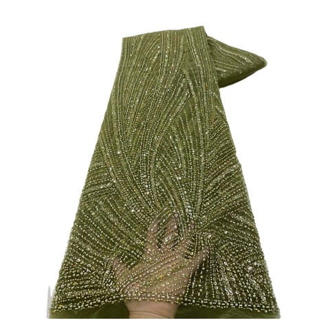 Großhandel afrikanische Brautkleider Spitze Stickerei Glänzende Pailletten Perlen Spitze Stoffe mit Perlen für Hochzeits kleid Großhandel